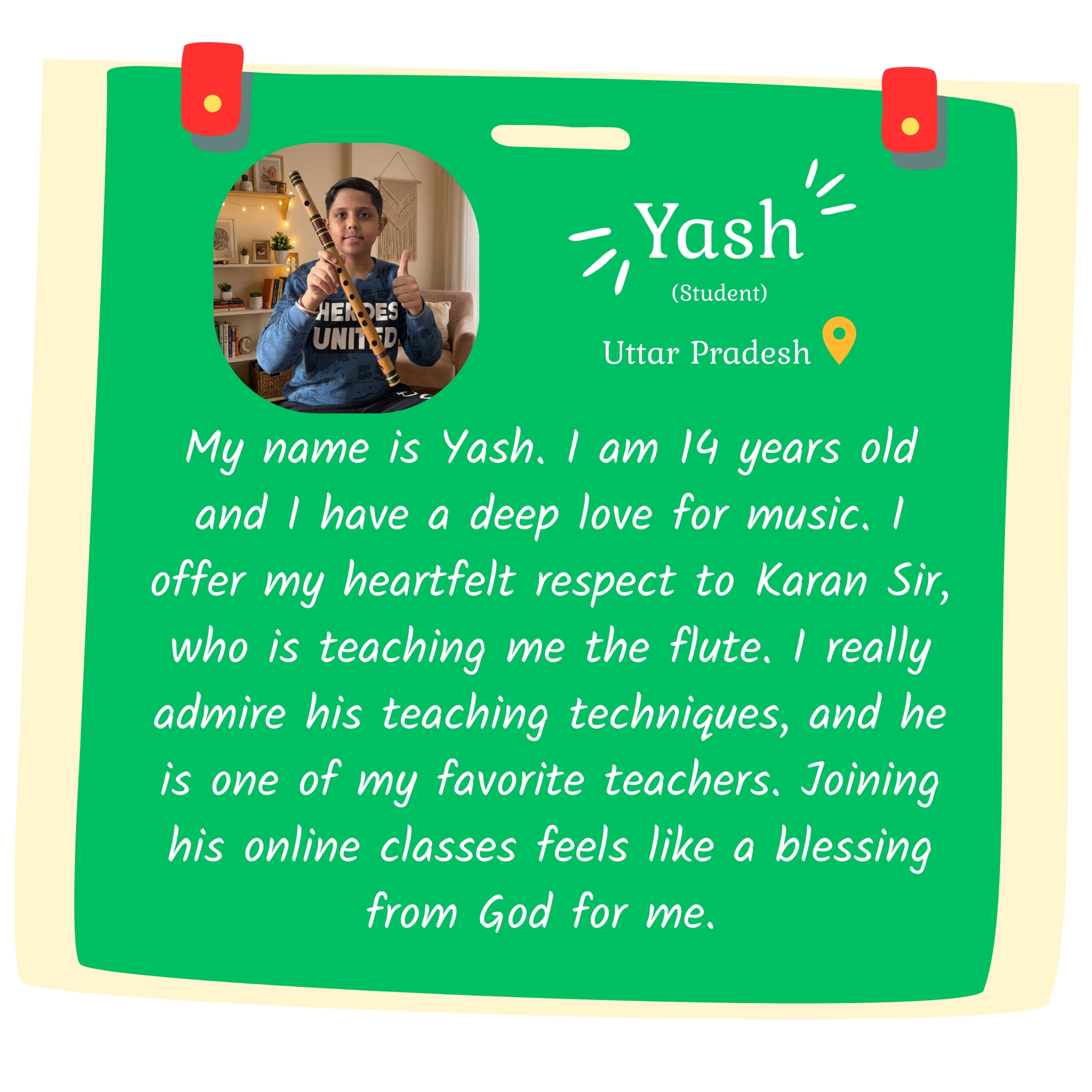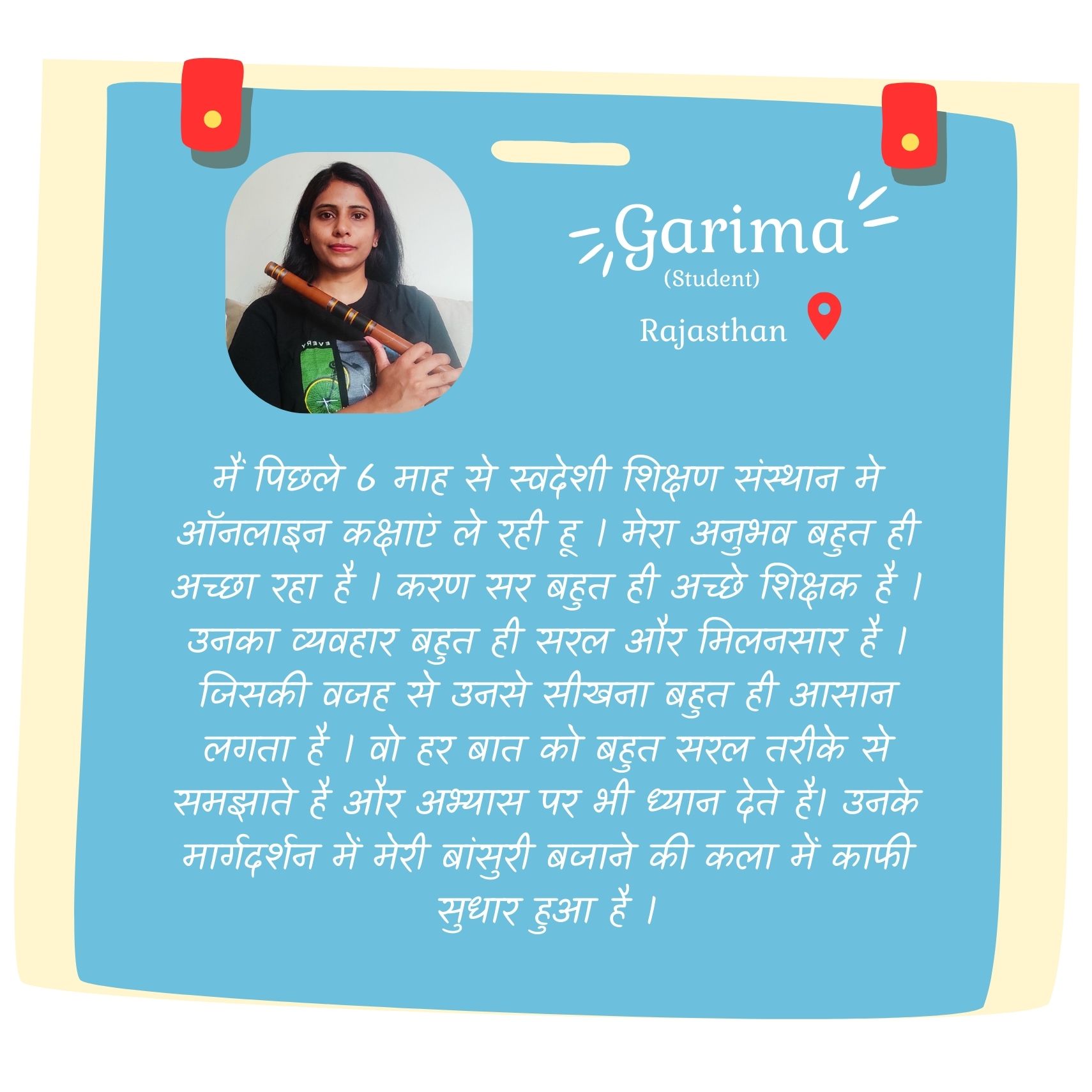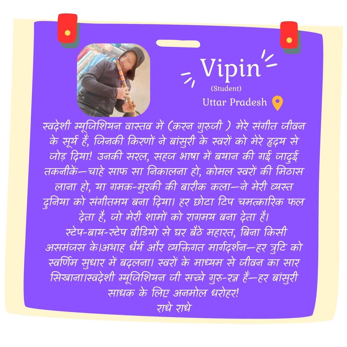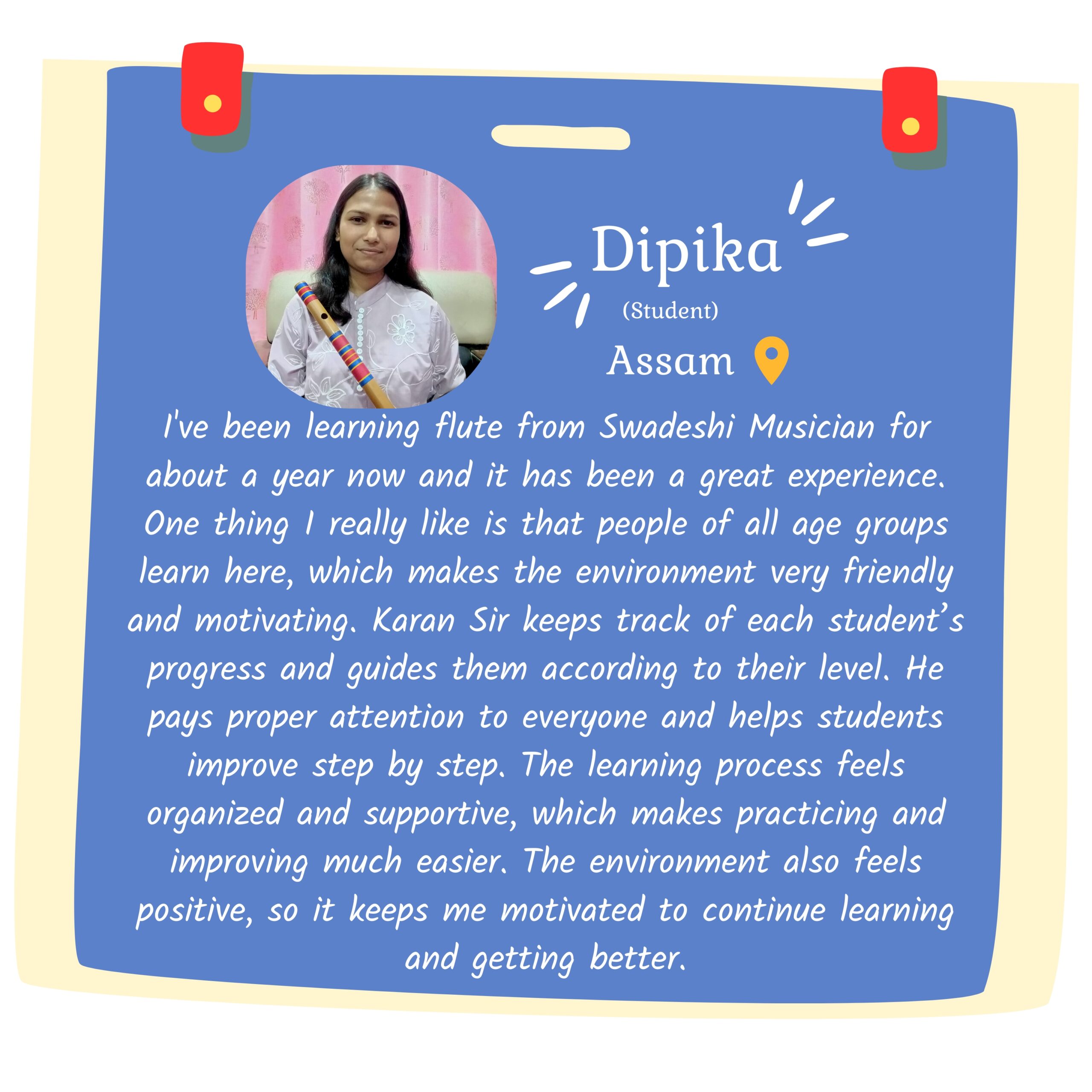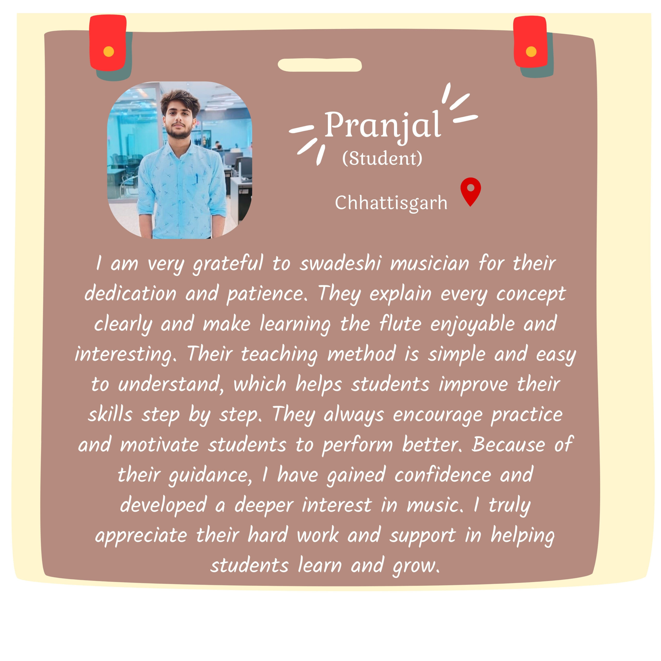 Although I am still young, I strongly believe that music is not defined by age, but by dedication and discipline. Today, as a young entrepreneur and music instructor, whatever recognition I have received is the result of my students’ trust and the blessings of my gurus. At our institute, training is not limited to the flute alone—several other musical instruments are also taught by devoted and skilled teachers who work with sincerity and commitment.
